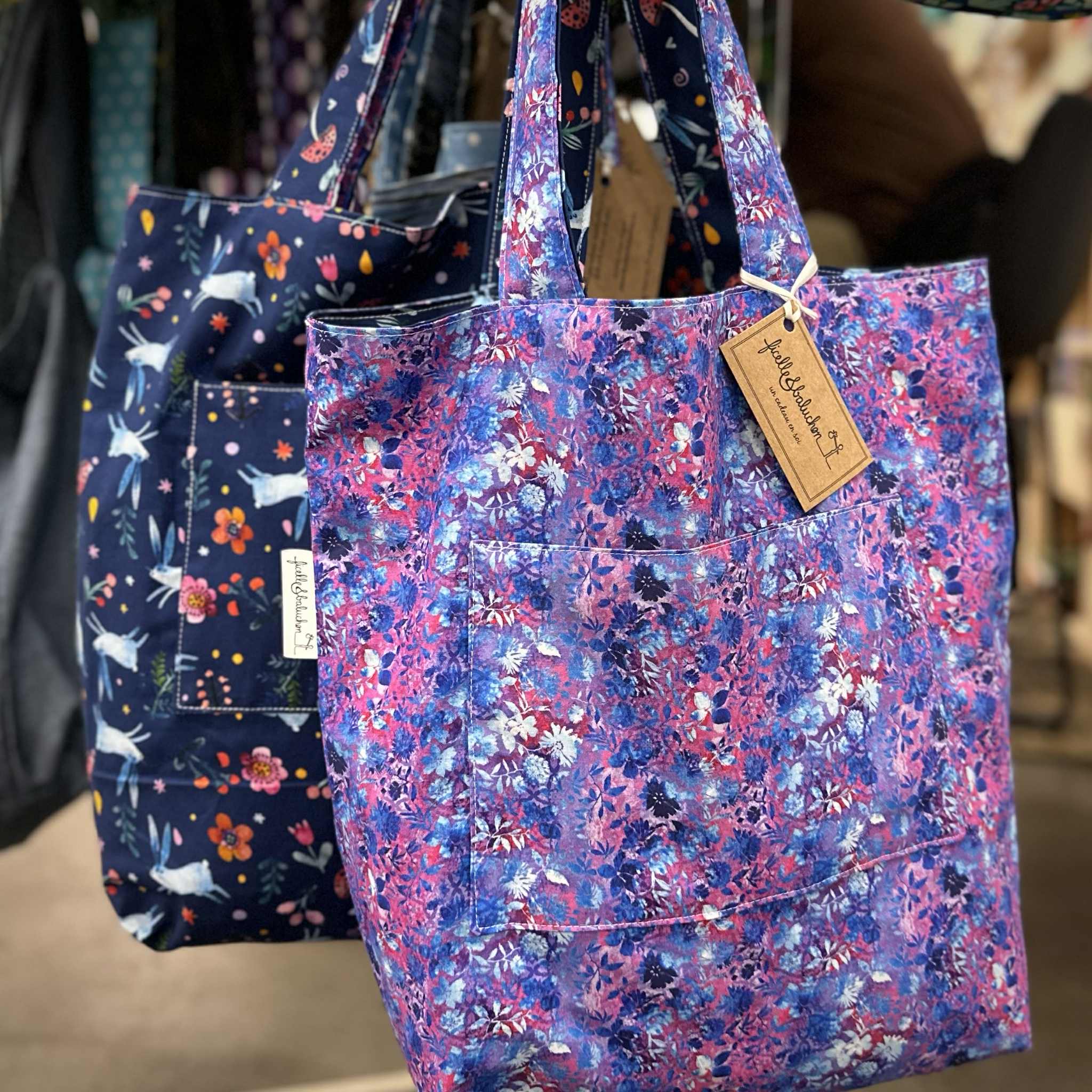 Robuste, confortable et confectionné à la main dans des tissus 100% coton qualité courtepointe, ce grand sac écoresponsable peut être utilisé pour toutes les occasions. Il offre suffisamment d’espace pour effectuer votre magasinage, votre épicerie ou simplement pour trimballer vos effets personnels lors des sorties. Il comporte deux pochettes de 9(L) x 6(l) pouces qui vous permettent de retrouver facilement votre portefeuille, vos clefs, vos lunettes ou tout autre objet qui doit se trouver à portée de main. La longueur des anses vous permet de porter le sac à l’épaule. La largeur (2 pouces) ainsi que les 8 épaisseurs de tissu de ces dernières assurent un confort maximal.